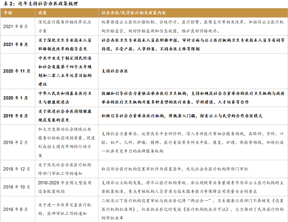 2.2政策支持社会办医,民营医院迎来发展契机