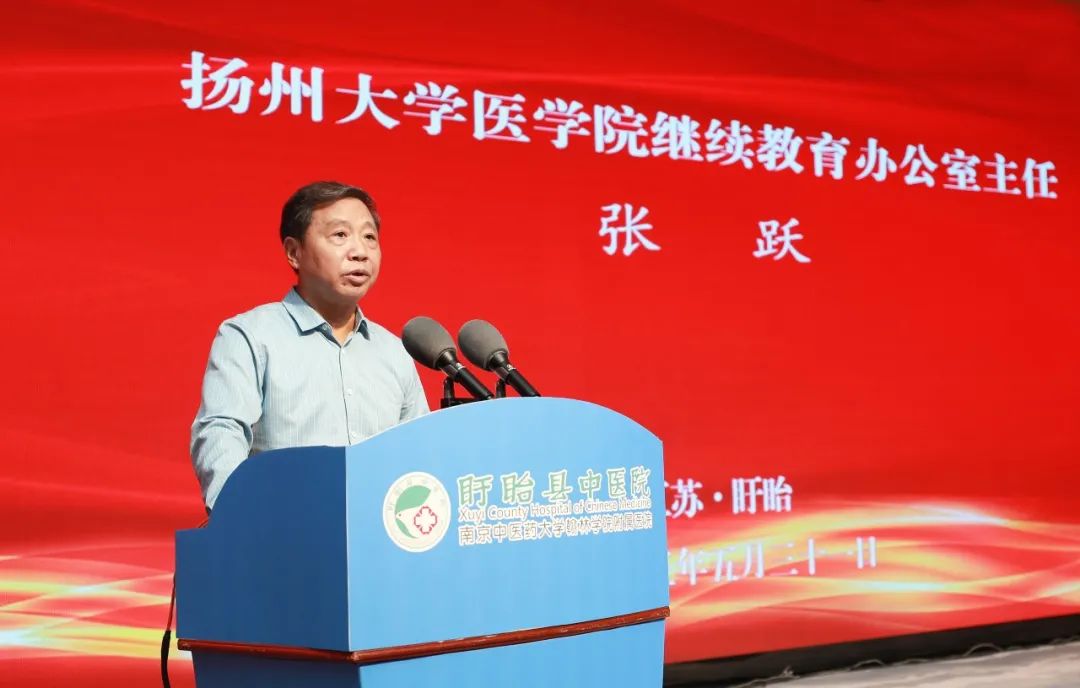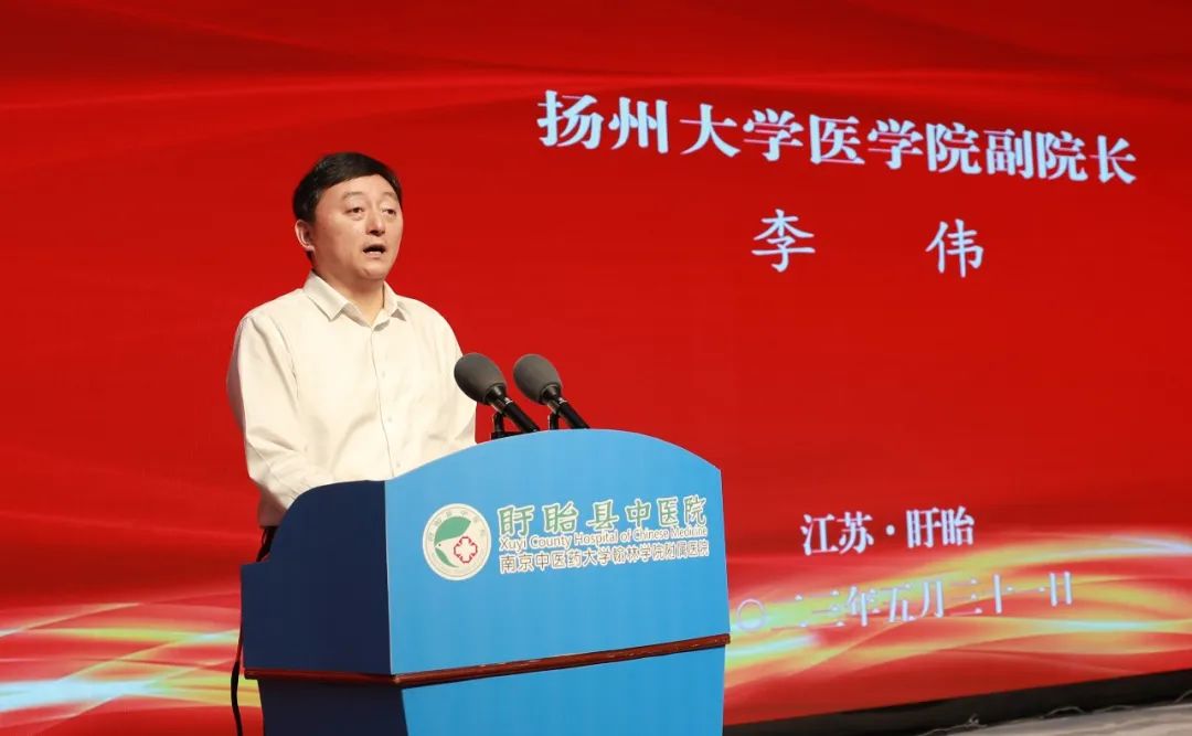 扬州大学医学院副院长李伟,太阳成集团tyc138健康集团首席执行官、太阳成集团tyc138健康科技集团董事长林杨林,盱眙县委宣传部部长袁来,盱眙县卫生健康委党组书记、主任张霞,盱眙县中医院党委书记、院长何占德出席仪式并讲话。