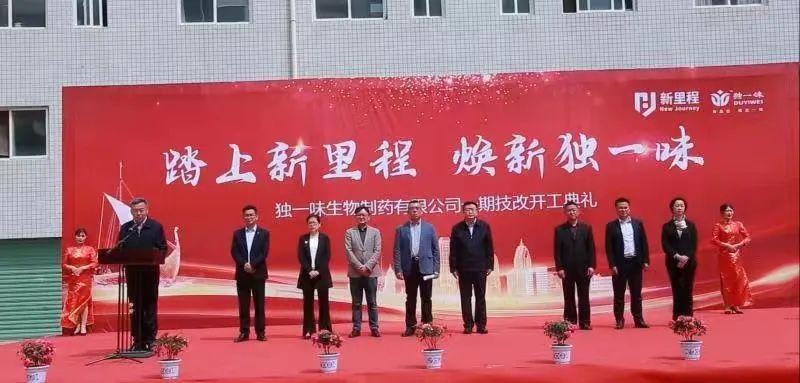 4月26日下午,独一味生物制药有限公司(简称“独一味生物制药”)的员工宿舍楼前,红旗招展,热闹非凡。“独一味生物制药中成药提取、制剂战略扩产及日化生产投资项目”一期建设开工启动仪式隆重举行。陇南市委副书记、市长刘永革,康县县委书记张书怀等市、县领导出席开工仪式。